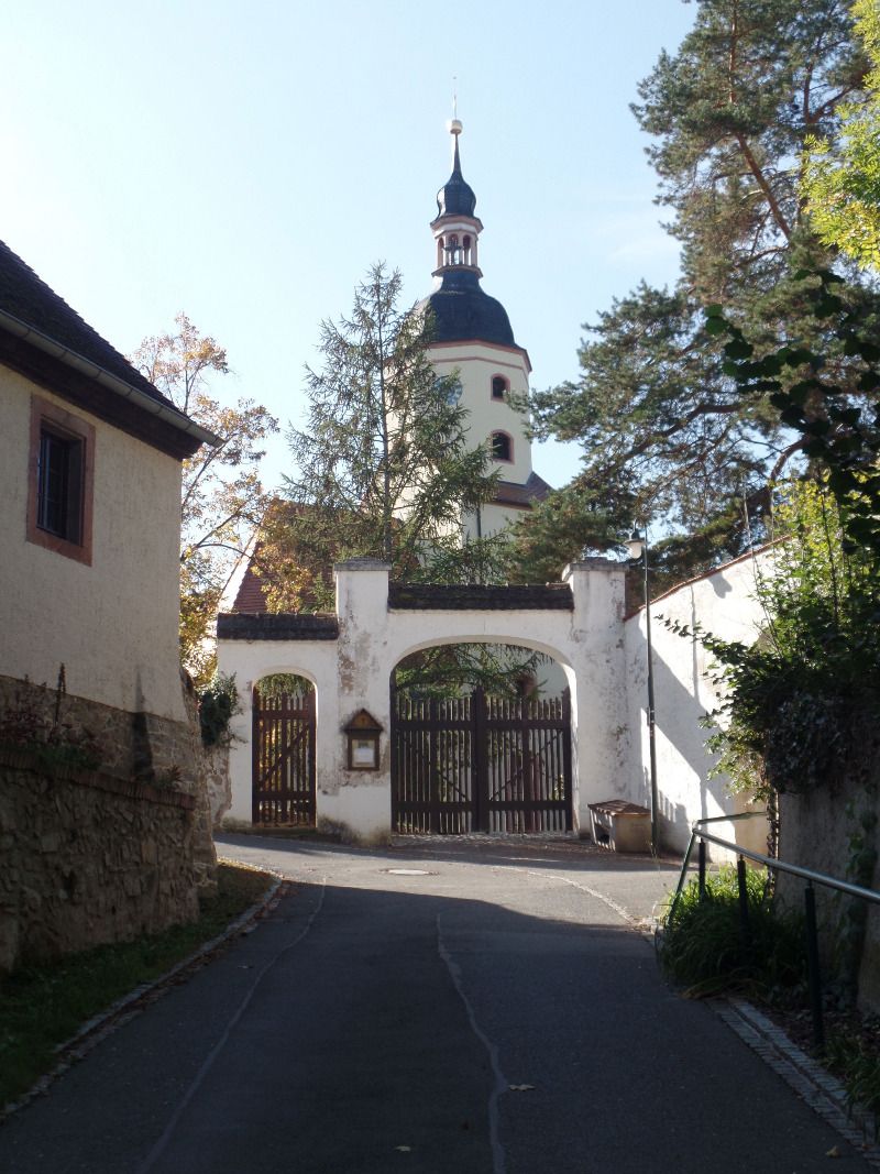 Die Kirche erhielt ihren gegenwärtigen Grundriss durch mehrere Um- und Anbauten. Der älteste Baukörper war vermutlich eine romanische Saalkirche. Unter deren Einbeziehung wurde ein frühgotischer quadratischer Turm aufgeführt. Ende des 15. Jahrhunderts erfolgte der östliche Anbau eines Chores mit Gratgewölbe, vermutlich im Zusammenhang mit einem Umbau des Kirchenschiffes. Um 1725 erbaute man den oktogonalen Turmaufsatz, 1873 im Zuge einer Grundhaften Erneuerung den westlichen Anbau am Kirchenschiff, farbige Holzdecke. Geöffnet täglich 10:00 bis 18:00 Uhr von März bis Oktober.