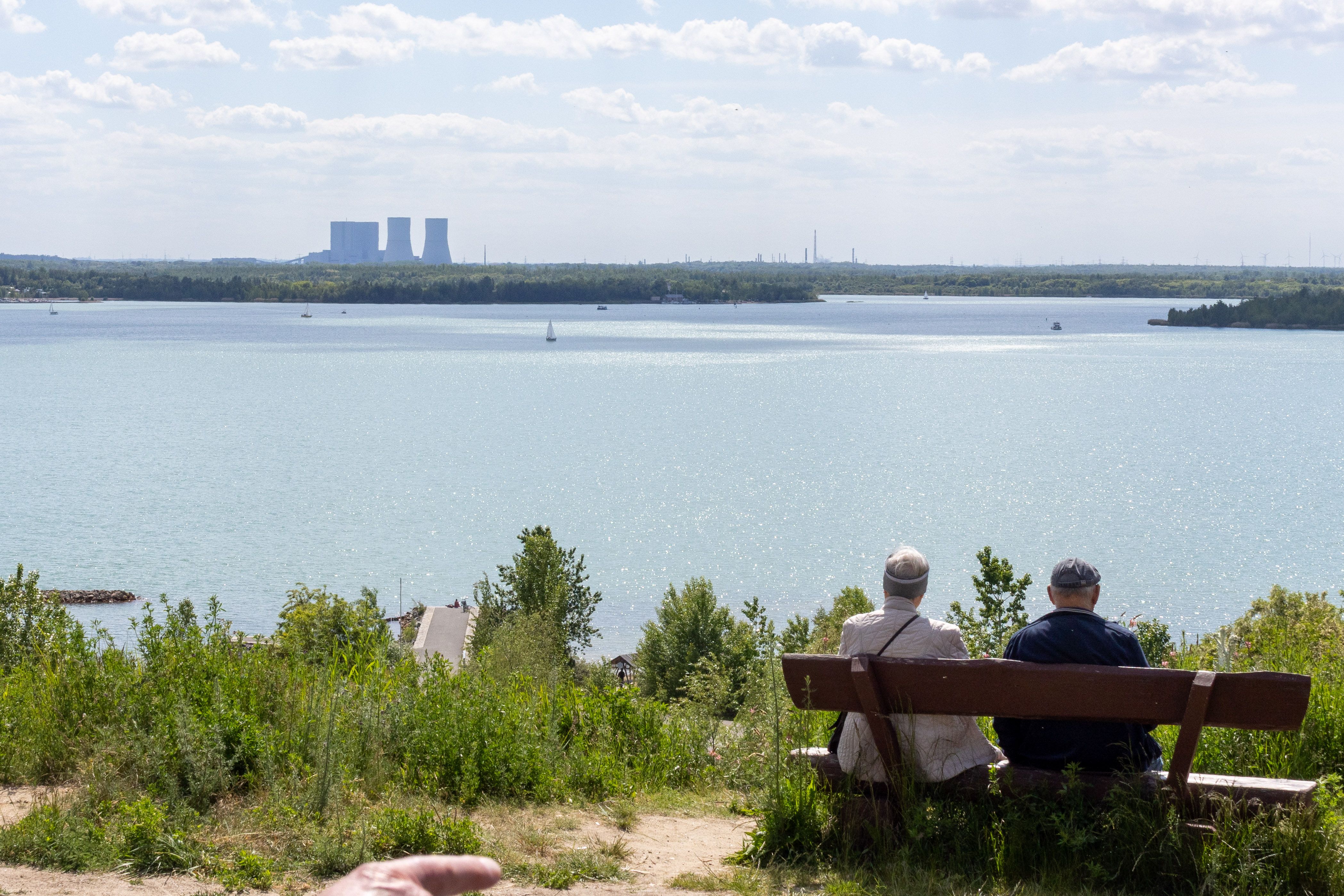 Weiter ging es entlang des Störmthaler und Markkleeberger Sees. Beide sind aus gefluteten Tagebauen entstanden und heute beliebte Ausflugsziele. In Markkleeberg angekommen, führte der letzte Abschnitt zur agra – dem derzeitigen Ausweichquartier des Leipziger Schauspielhauses. Zwar konnte nur ein Teil von uns das Stück Die Umsiedlerin von Heiner Müller besuchen (ausverkauft!), doch der thematische Bezug zur ländlichen Lebenswelt, wie sie auch Seume kannte, war bemerkenswert - fanden die, die das Stück sehen durften.