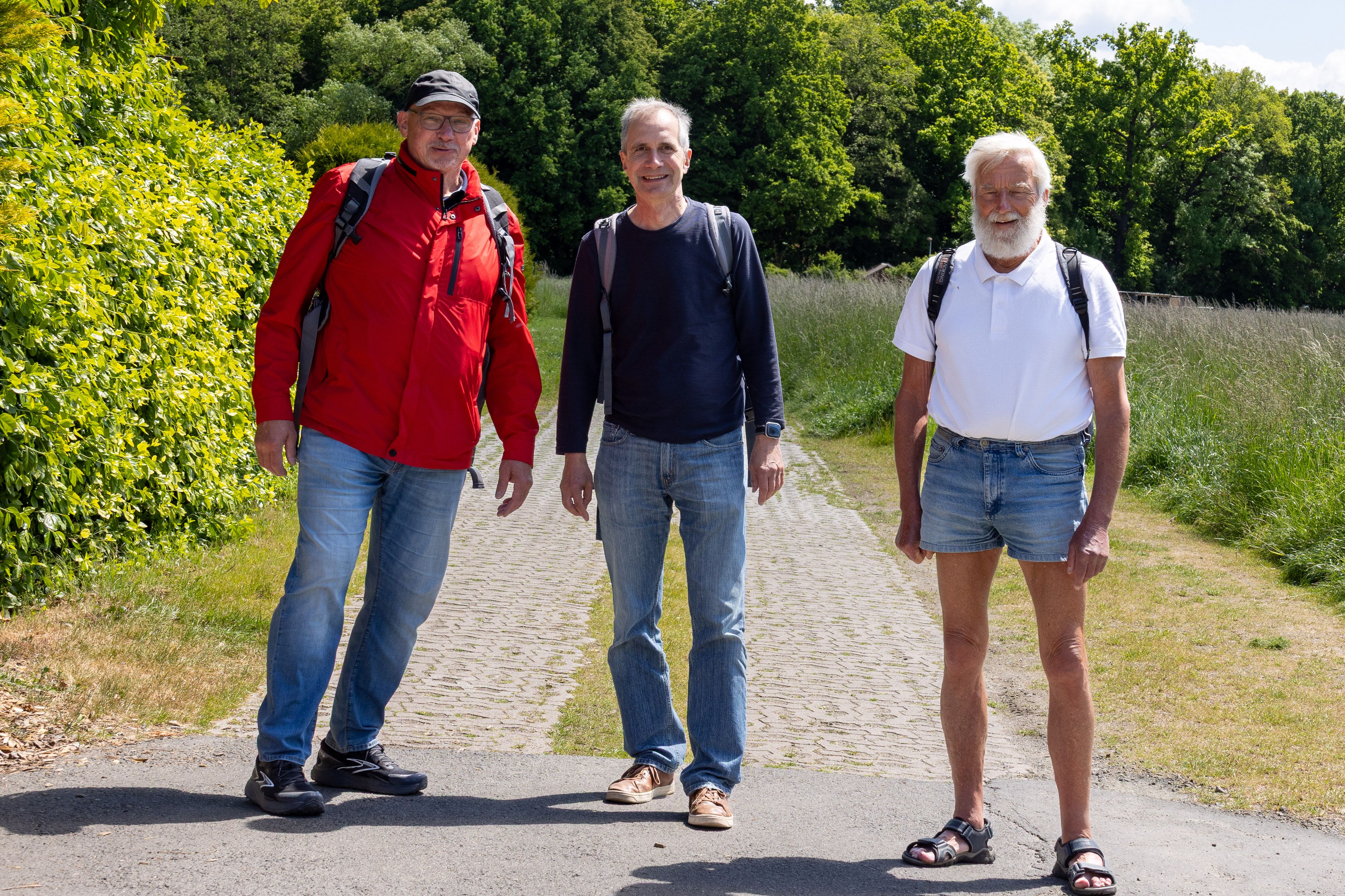 Wir starteten in kleiner, aber engagierter Runde. Los ging es am Grimmaer Markt, mit Marschverpflegung aus dem Seume-Haus. Das Wetter war ideal: sonnig, aber nicht zu heiß. Die Route führte wie gewohnt durch die abwechslungsreiche Landschaft südlich von Leipzig, vorbei an Münchteich, Naturfreundehaus und durch das Oberholz. In Belgershain, wo ein idyllischer Schlosspark zur Pause einlud, stieß unser vierter Teilnehmer zur Gruppe.