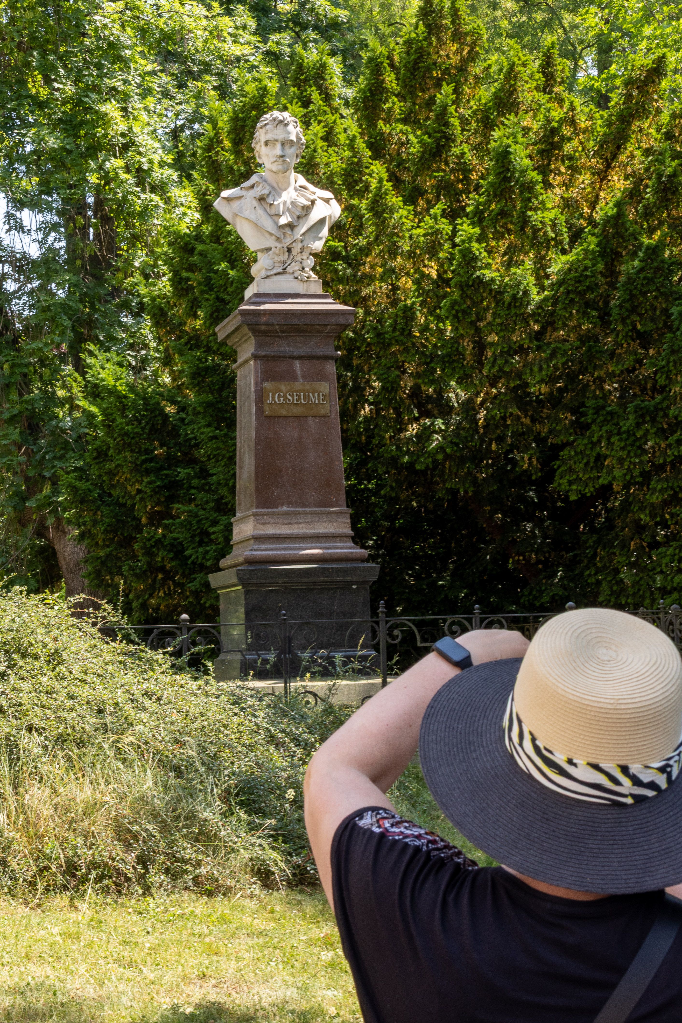 Die Teilnehmer legten Blumen am Grab nieder und es gab eine Lesung ausgewählte Passagen aus Seumes Reisebericht. Danach haben wir uns rege über seine Aktualität ausgetauscht. Gerade in Zeiten, in denen individuelle Freiheit und politische Wachsamkeit wieder zu Kernfragen unserer Gesellschaft geworden sind.